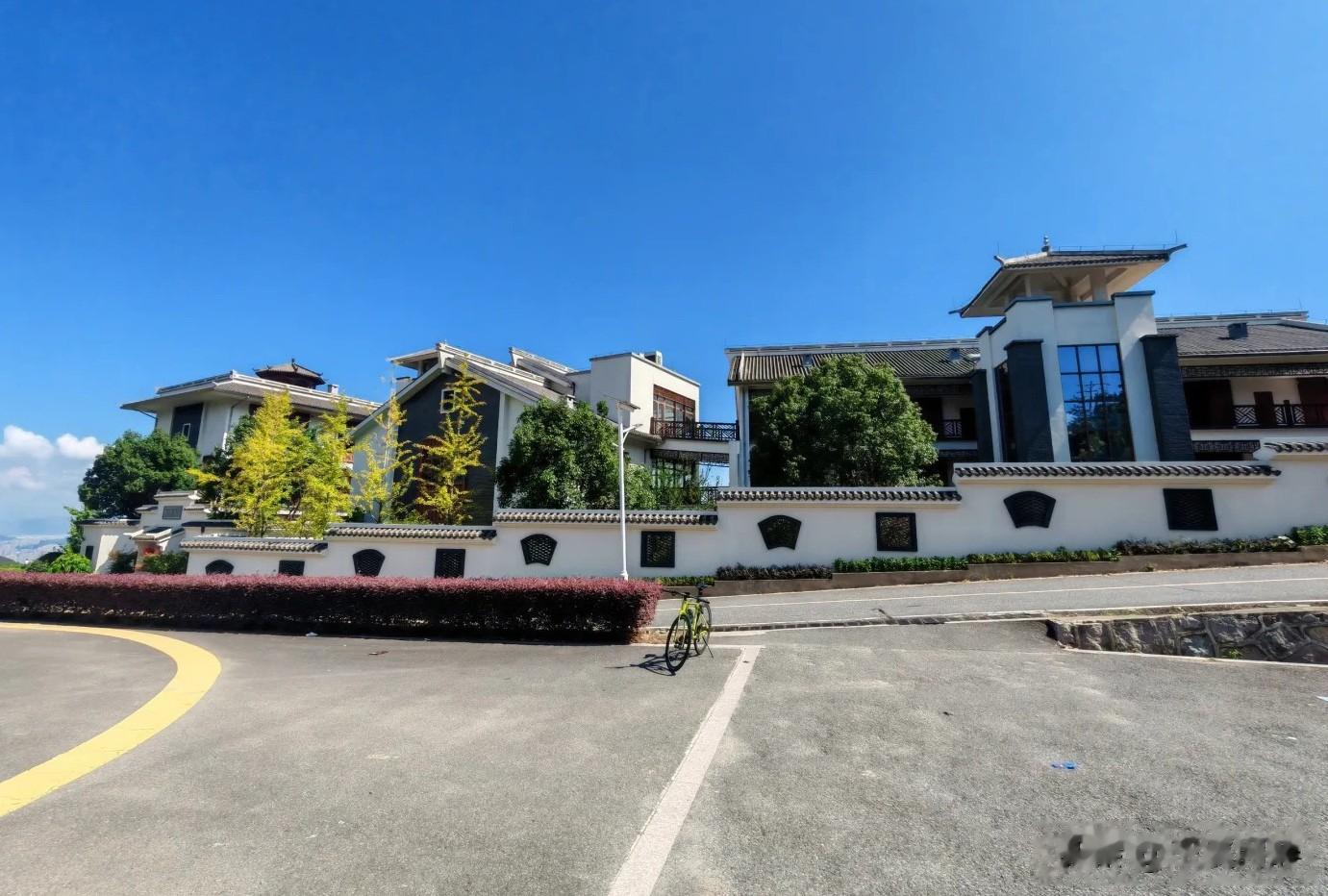 会议中心大门紧闭,外面有三三两两的游客在拍照打卡。里面房间到底是啥样,外人不得而知,听说里面有餐厅、客房、娱乐中心、会所、花园,是休闲度假的好去处。整个会所随着山体自然形成层叠式山林景观,与周围自然环境融为一体,气势磅礴。