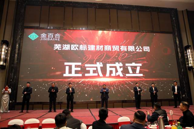 活动现场迎来重要时刻——欧标建材公司成立仪式。在全体股东的见证下,新公司正式启航。这标志着金百合在建材领域的布局迈上新台阶,也预示着公司将在标准化、国际化方面实现新的突破。成立仪式简洁而庄重,现场掌声雷动,共同祝福这一新起点。