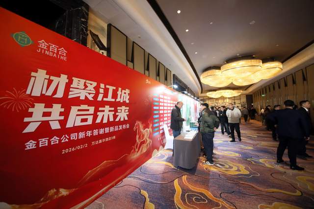 二月江城春水初生,建材行业风云再起。2026年2月2日,恰逢龙抬头的祥瑞之日,"材聚江城 共启未来"——金百合公司2026年新年答谢暨新品发布会在芜湖隆重举行。来自全国各地的合作伙伴、行业专家及业界同仁齐聚一堂,共同见证这场集战略发布、行业对话、感恩回馈于一体的年度盛会。