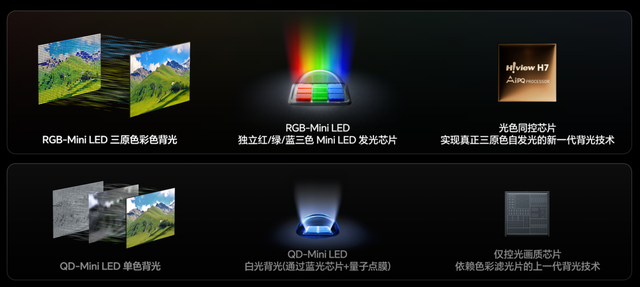 海信RGB-Mini LED技术能够跨代领先,背后离不开“王炸双芯”组合:一颗是RGB-Mini LED三原色发光芯片,另一颗是全球首款RGB光色同控AI画质芯片信芯H7。两颗芯片完美协同,直接实现了100% BT.2020色域,相比传统的QD-Mini LED和QD-OLED,分别提升了19%和9%;再加上108bits的超高控色精度,让色彩准确性提升68%,能充分还原大自然的真实色彩。同时,海信RGB-Mini LED的能耗相较OLED降低40%以上,真正做到了画质又顶又省电。