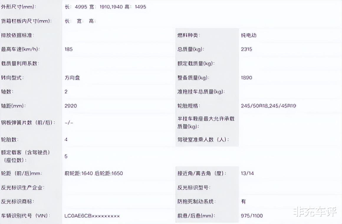 各位坐稳了分析一下这个数据。这么大一台将近5米长的车,申报的单电机最大功率居然只有135千瓦和150千瓦。这是什么概念?现在随便拉个十几万的电车,电机功率都敢往200千瓦以上标。