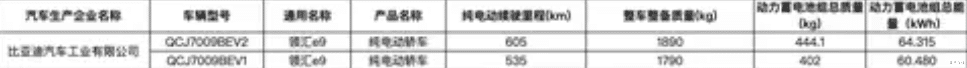 电池更逗。弗迪的磷酸铁锂电池,容量60.5千瓦时和64.315千瓦时。对应工信部续航535公里和605公里。