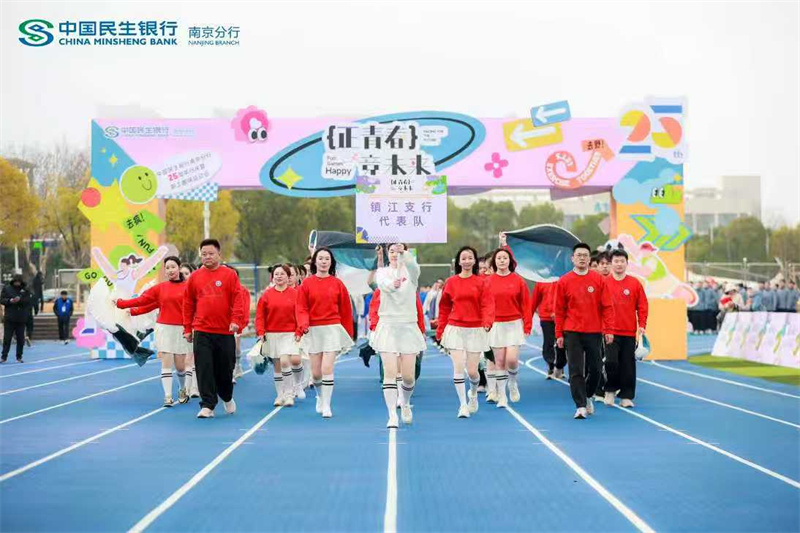 3月16日,中国民生银行南京分行举办25周年行庆暨职工趣味运动会,镇江支行代表队勇得团体第二名(图/民生银行镇江支行)