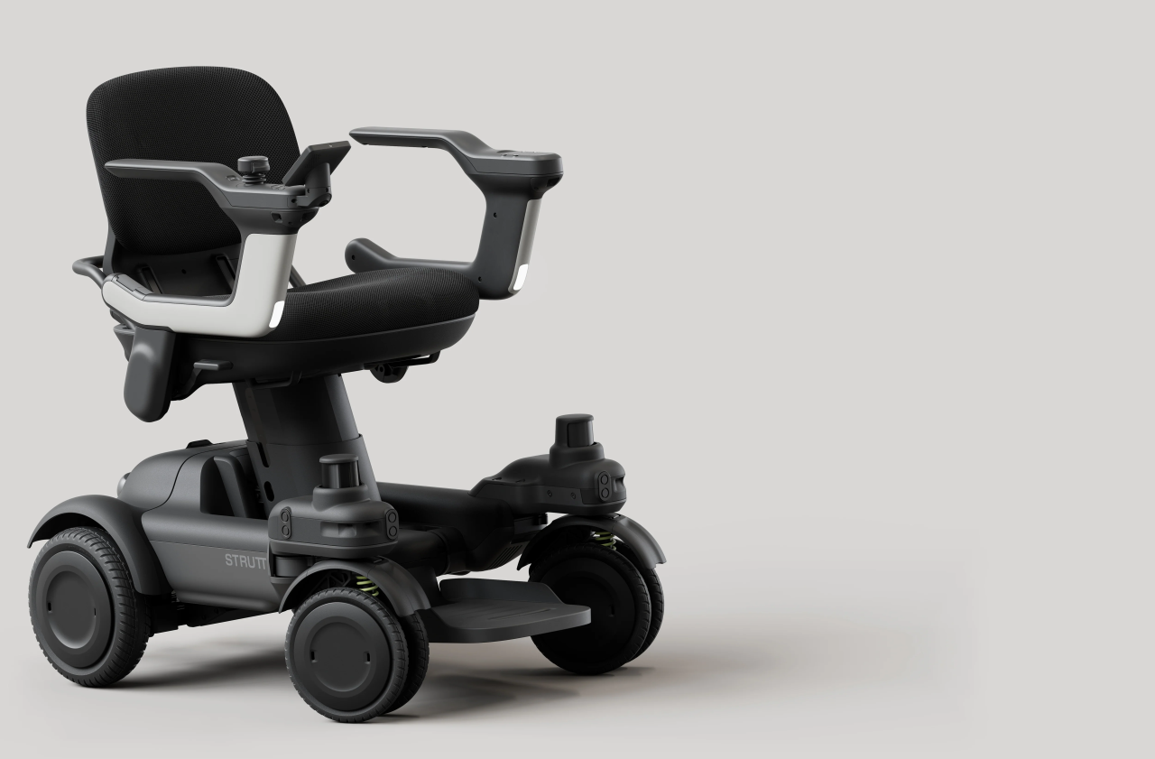 高尔夫推车是具身能力在高价值休闲场景的应用,而由大疆光电部前组建者、Livox激光雷达产品线负责人洪小平创立的Strutt则将这一逻辑应用到更强调“安全责任”的场景。Strutt总部位于新加坡,关注全球老龄人口增长现状,推出的ev智能个人出行载具将激光雷达、智能辅助驾驶系统等自动驾驶技术应用于智能轮椅领域,不仅能识别环境障碍,还能通过AI算法预测行人移动轨迹,在复杂人流中规划更优路径。该产品获得2025年红点奖“设计之星”和2026年CES“最佳创新奖”,被视为全球首个“会思考”的出行伴侣。