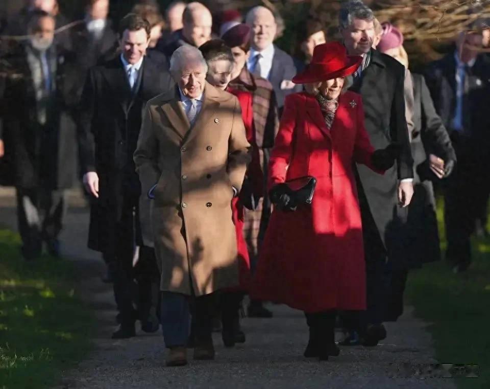 当地时间12月25日,正值圣诞节,查尔斯国王和卡米拉王后率领多名家人在诺福克郡圣玛丽抹大拉教堂参加圣诞教堂礼拜活动。