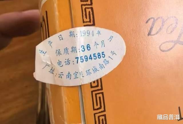 94吉幸小黄盒的外盒侧面有一张封口贴,印着生产日期、保质期等信息。这款茶的生产日期很明确,是1994年出产的,年份标记非常清楚。