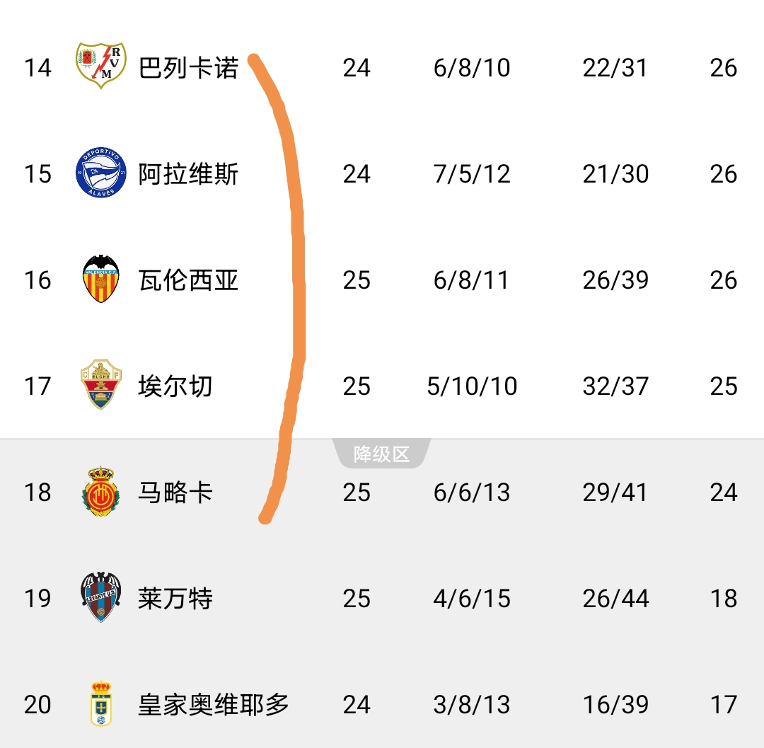 赛后第一时间瓦伦西亚队积26分排名第16,仅领先降级区2分。可以看到西甲保级争夺白热化了。而比利亚雷亚尔队继续排名第3。