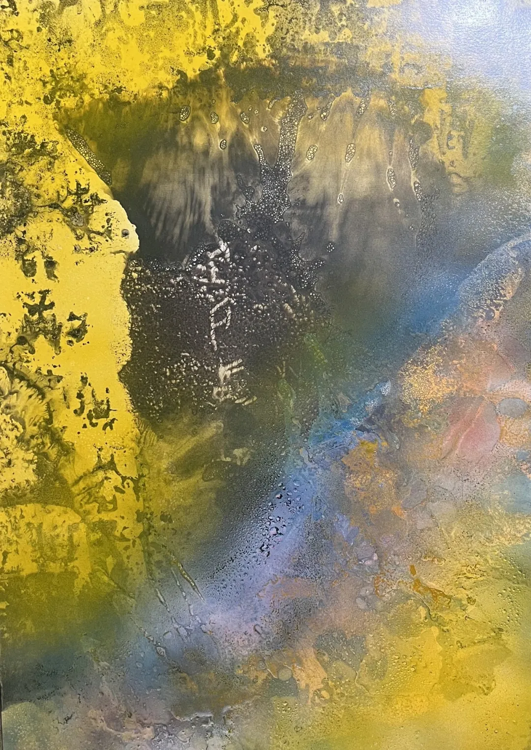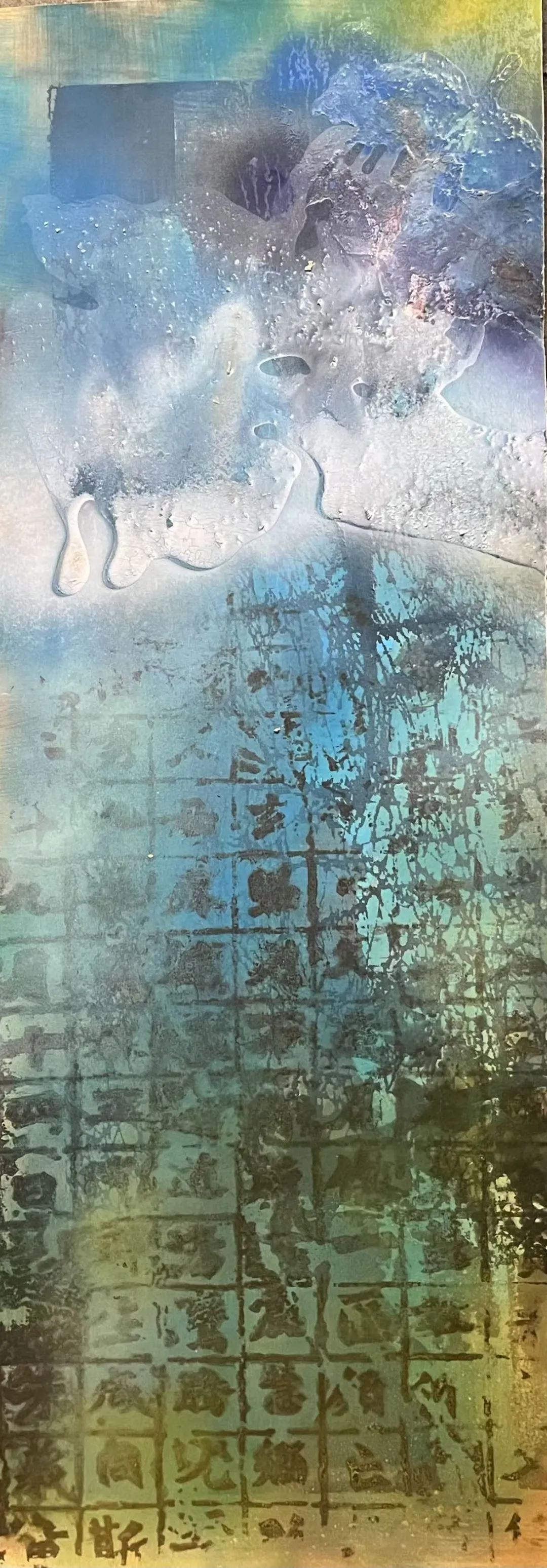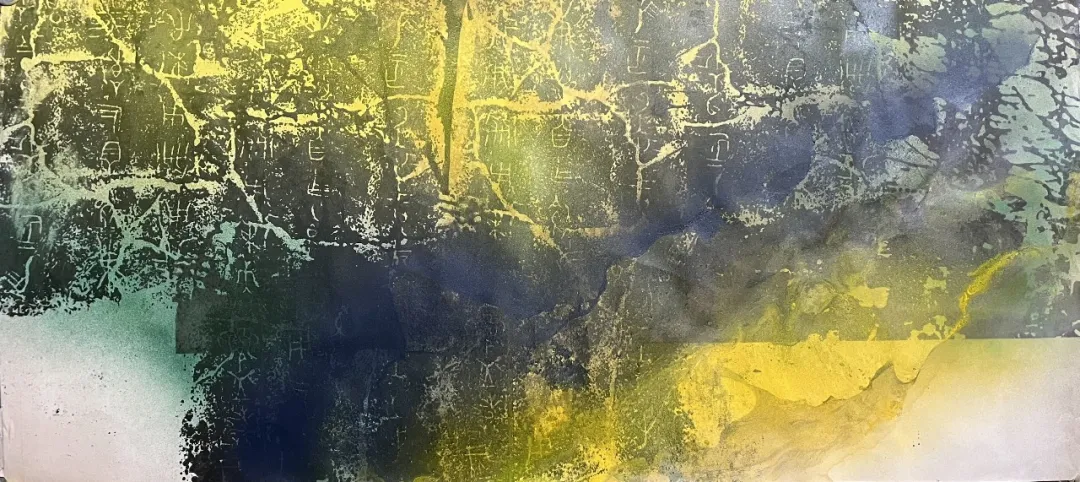 郑忠的艺术创作涵盖版画、水墨画、综合绘画等领域,曾经作为丝绸图案设计师、印染工程师的他,提炼出超越工艺的概括,他精通图案的理性布局,最终心向的却是绘画中那不可规划的“直觉”。这从“工”到“艺”的转身,暗合了道家“反者道之动”的深意——极致的工艺锤炼,竟通向了“无意于佳乃佳”的潇洒与豪放。其水墨画汇聚了油画、水彩、版画语言的韵味与情调,综合彩墨创作则打破媒材界限,体现‘形式自治’的理念。他主张艺术应自然表达思想,反对矫饰,欣赏传统文化“禅意”的“妙不可言”,作品常呈现恢弘磅礴、斑驳肌理,玄妙莫测的道家美学品味。2013年水墨作品 碣石篇系之一以224000元成交。
