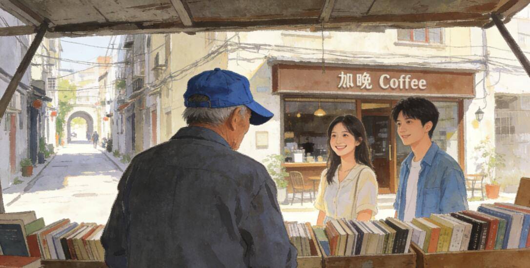 老巷的青石板被岁月磨得发亮,巷口的旧书摊守了二十年。摊主陈叔总戴着顶洗得发白的蓝布帽,指尖沾着常年翻书留下的墨痕,见人来便抬头笑,眼角的皱纹堆成两道弯。