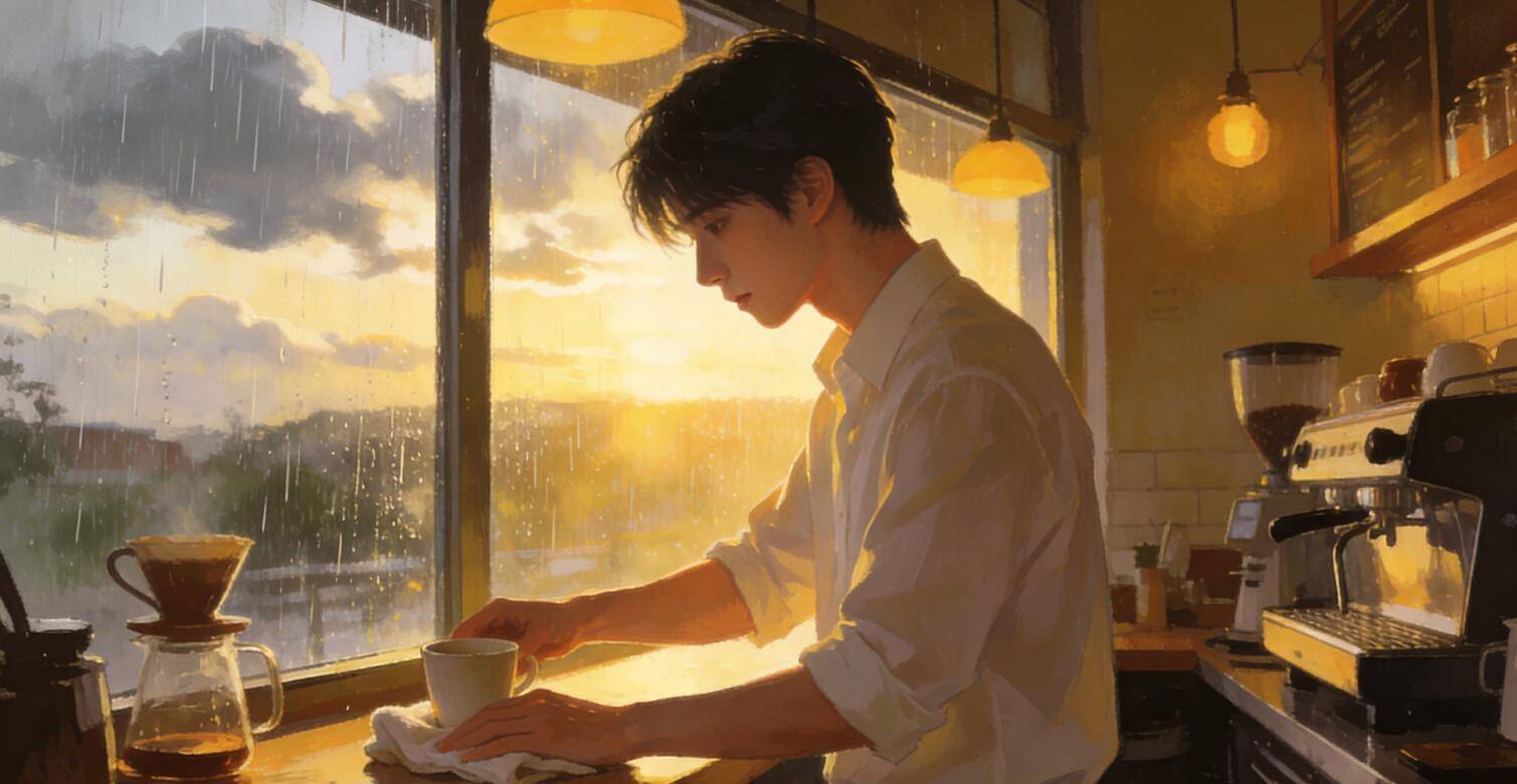 苏晚抓起书和信,冲进雨里。巷尾的咖啡馆飘着浓郁的咖啡香,她推开门,一眼就看见了那个熟悉的身影。男人穿着干净的白衬衫,正低头擦拭杯子,侧脸的轮廓和记忆里一模一样。