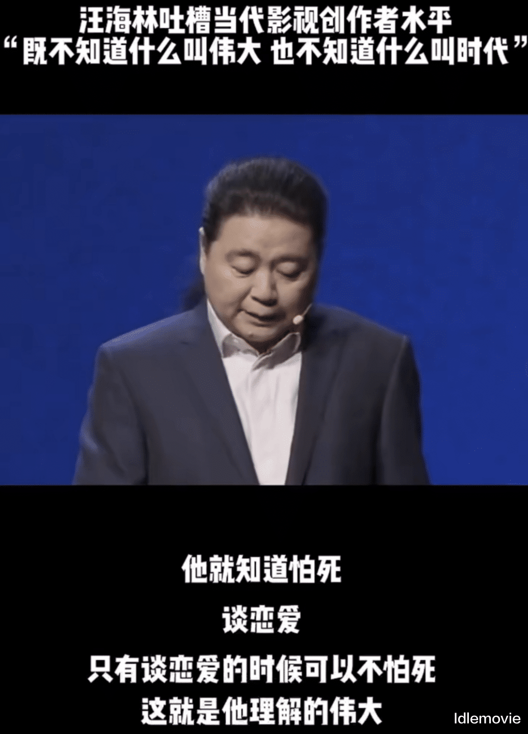 你让他写战争,他就写战士怕死,因为他自己怕死,他就知道怕死、谈恋爱,只有谈恋爱的时候可以不怕死,这就是他理解的伟大。”