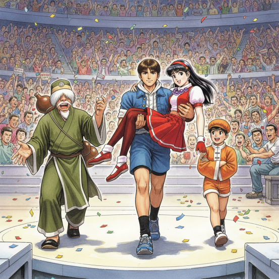 在《拳皇97》最后的结局中,一个特殊的观众来到了比赛现场,她是一名作者轮椅的女孩子熏,她是雅典娜在这次比赛特意邀请过来的,比赛前雅典娜收到了一封信,正式这位粉丝的,她因为看到拳皇比赛的转播,看到雅典娜在赛场上的优异表现,给了自己很大的鼓励,她会好好的努力治疗,尽自己最大的力量去康复。