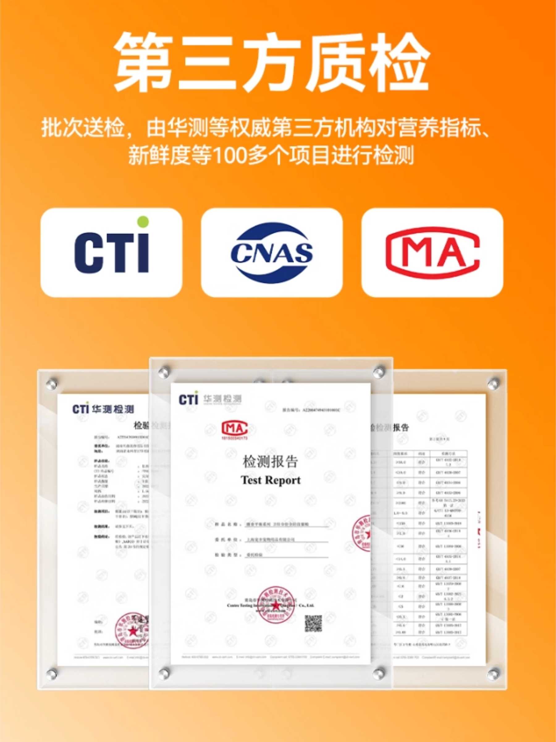 看一款猫粮的品质是否过关,关键就看两点:有没有做检测,以及找谁做的检测。