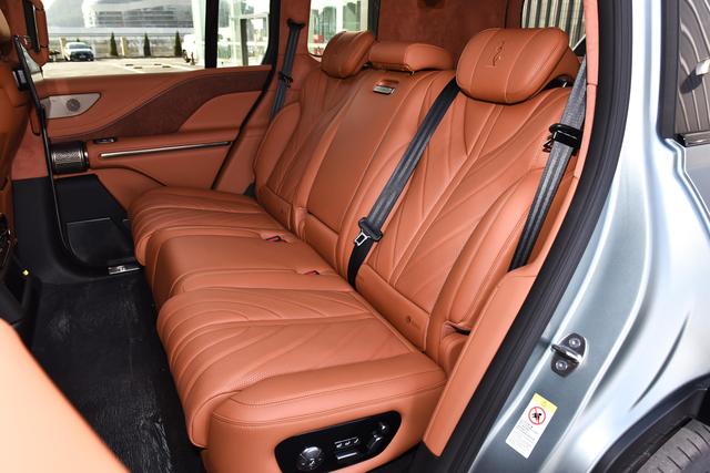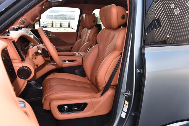座椅全是 NAPPA 真皮包覆,还做了打孔和缝线处理,越野玩家版更是采用真皮与麂皮双拼混搭的方式,坐起来感觉更棒。前排座椅支持 14 向电动调节,包括 4 向腰部支撑和腿托调节,加热、通风和按摩功能也都有。二排座椅功能也很强大,腰部调节和腿托调节都有,靠背可调节角度很大,能轻松找到舒服的坐姿,再加上腿托以及加热和通风功能,坐起来一点都不比行政级轿车的后排差。豪华版更是在这基础上增加了按摩功能,简直不要太享受。