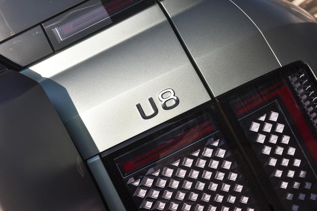 坐进车内,仰望 U8 的星环全感座舱采用对称式设计,还融入了中式美学,从选材用料到工艺,那都是无可挑剔,完全对得起它的定位和价格。座椅用的是 Nappa 真皮,经过 78 道鞣制、涂饰等工艺处理,摸起来柔软得很,形状还特别挺括。顶棚是麂皮包覆的,车内你能摸到的地方基本都是皮革包裹,中间还搭配了原产非洲的沙比利木饰板,每一块木纹都不一样,尽显奢华。