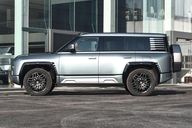 先看前脸,大灯线条勾勒出时空之门的形象,LED 日行灯一亮,呈现出 “鼎” 字形样式,特别独特。再瞧瞧侧面,车顶线条平平直直的,水切线和前机盖线条齐平,从前大灯一直延伸到后尾灯,形成一条笔直的线条,视觉上显得车特别长。前后轮拱采用多边形设计,既好看又实用。22 英寸锻造轮毂有两种造型可以选,能满足不同人的喜好。D 柱那的能量塔设计可有意思了,在充放电和解闭锁的时候,会有个性化灯光效果,科技感直接拉满。
