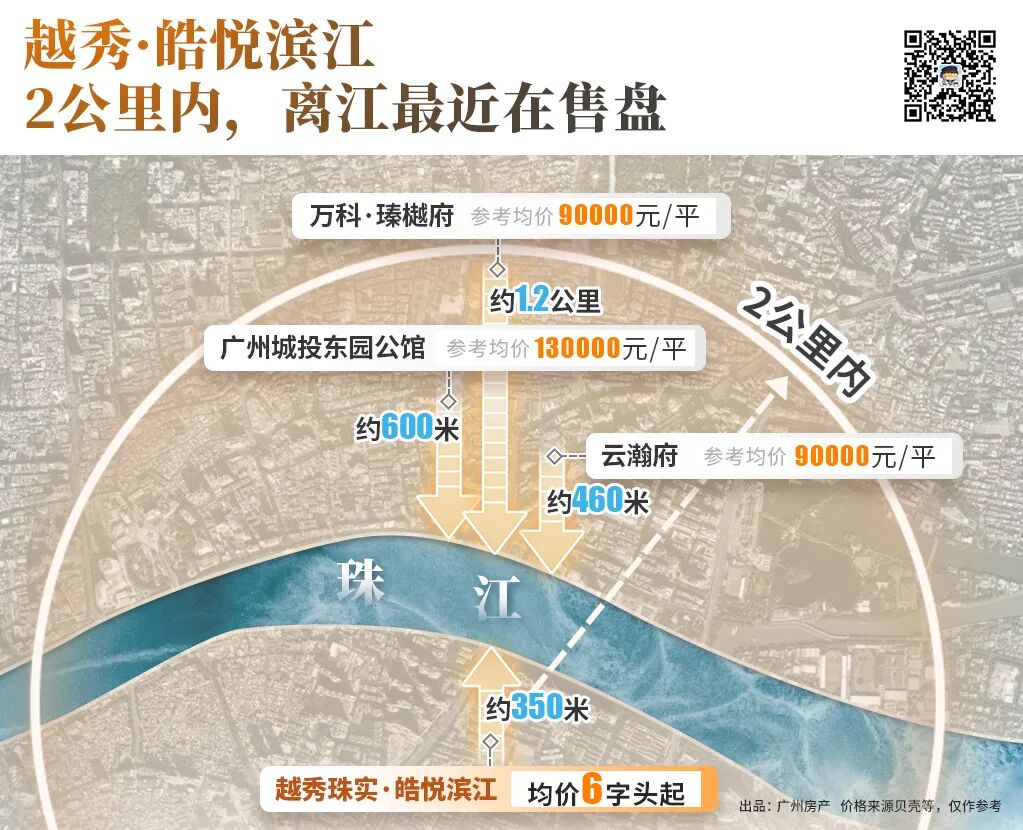 下图可以看到,江对面越秀区的在售项目,价格在9-13万/平,皓悦滨江比这几个项目更亲江,均价仅6字头起,不论是价格友好度,还是亲江度,都堪称省府圈置业最优选。
