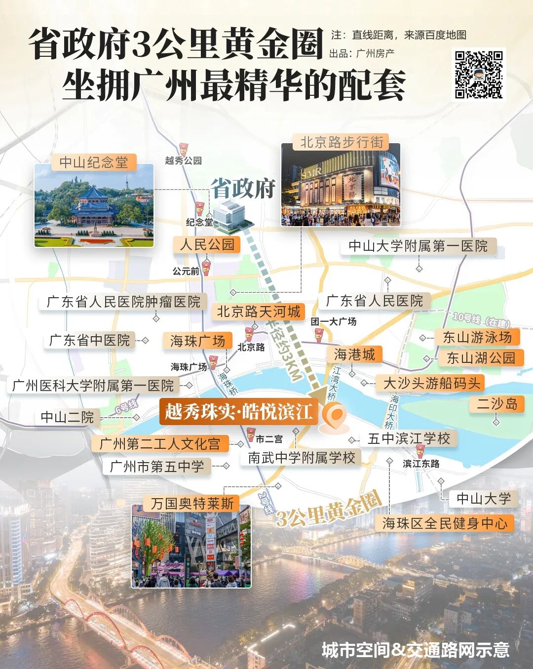 皓悦滨江,旁边是大元帅府,一桥之隔是越秀,过江即达省人大、市政府等政务辐射圈,行政资源和生活配套无与伦比。