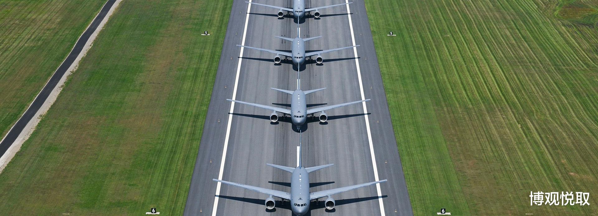 2015年9月,KC-46完成首飞;2019年1月,首架量产机交付美国空军。其设计深度融合767系列优势:采用767-200ER的机身、767-300F的机翼与货舱结构、767-400ER的数字化驾驶舱,既继承了767平台的可靠性,又针对军事需求优化了燃油系统与任务模块。