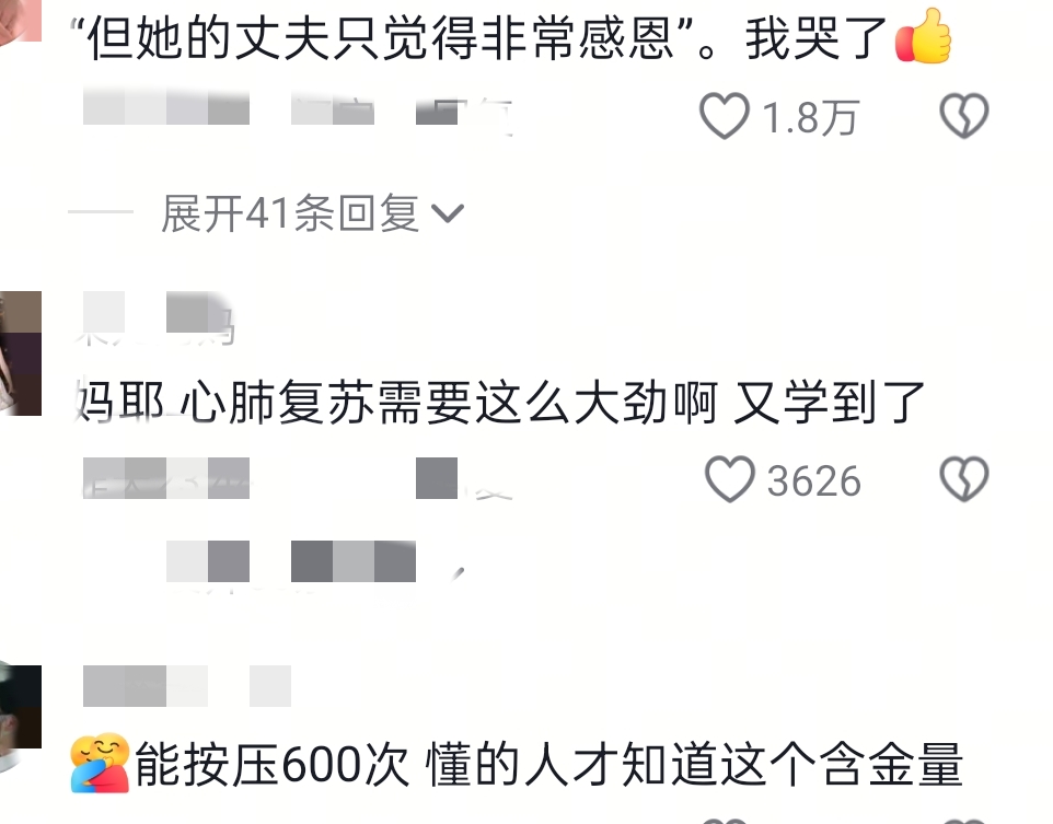 可是对方老公的一句话给他吃了一颗定心丸,他说道,正是因为有这么大的按压力度,才让我的妻子有机会活下来,这份恩情我们永远还不清!