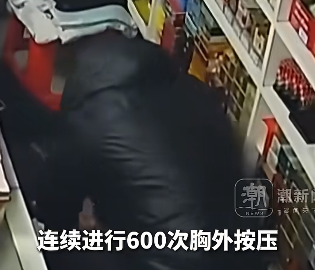 在急救人员的指导下,张先生总共按了600下心肺复苏,而且全程都没有休息,只为了为老板娘争取到救护车的到来。