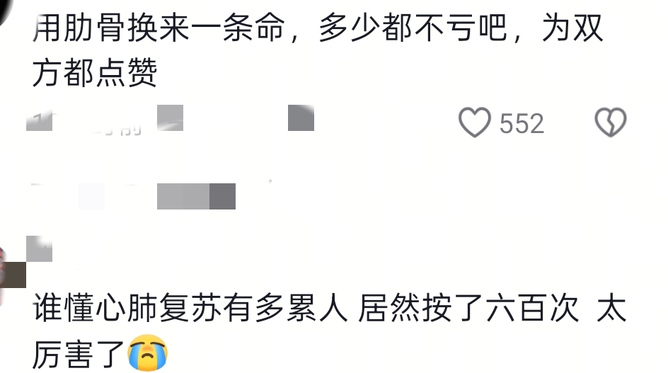 又是我知道因为你的努力,才让我的妻子有生还的可能,所以即使按断了我妻子的6根肋骨,我也同样对你感激不尽!