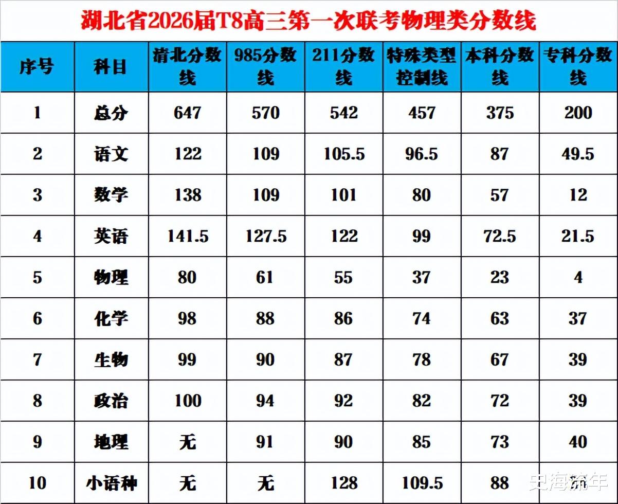 因此,物理学科作为重要的区分性科目,试题通常会设置更高的思维量和更强的综合性,导致整体得分率下降。例如,搜索结果显示,2026届湖北T8联考物理方向的“清北线”为647分,而物理单科分数线为80分,这正说明了要想进入顶尖梯队,必须在物理等关键科目上达到极高水准。