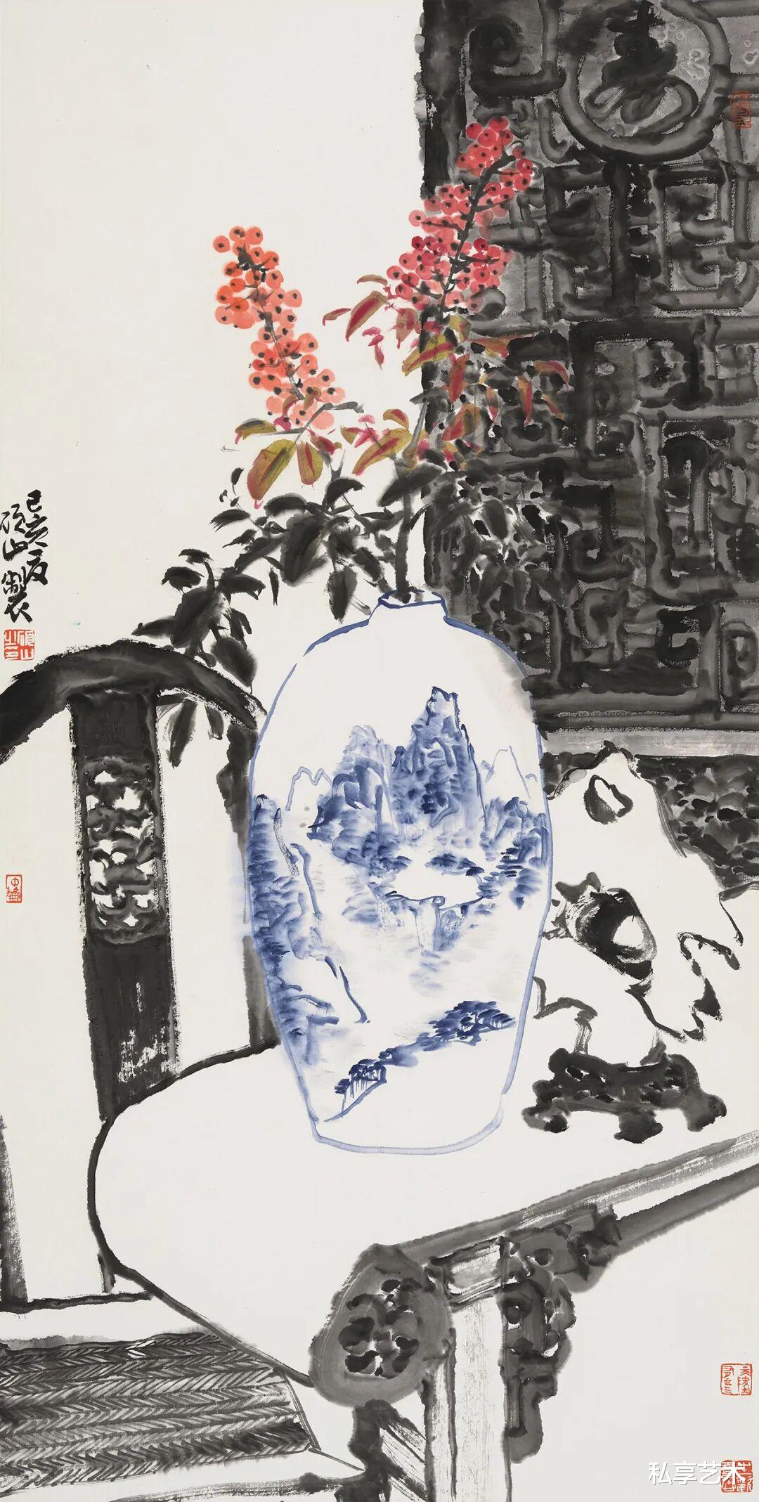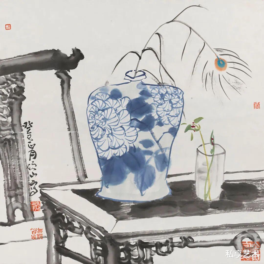 中国写意画特别是大写意花鸟画是自明代徐谓创立的一种独有的艺术形式,开一代先河。它以中国传统文人思想及诗词修养为底蕴,以中国书法技巧为支撑,放笔直写,不求形似,而注重所写物象之神韵与墨色氤氲变化之趣味。而后又有明末八大山人在继承徐谓技法的基础上,将大写意绘画的内涵与精神进一步阐释,八大的绘画,实际上是通过作品在写他自己人生的境遇,包含了惊恐、愤懑以及悲凉等诸多情绪。但所呈现的画面又是那么的高逸、清极、绝尘,读者无不叹为观止。再后,吴昌硕以金石书法入画,用笔浑朴、泼辣,画里面满是诗书修养,是文人绘画又一高峰。近代齐白石出身农民,受家乡山川自然蒙养,拜师求学,于诗、书、画、印都打下了良好的基础。在对继承传统的认识上,对以上三位佩服的五体投地,他曾作诗:“青藤雪个远凡胎,老缶衰年别有才。我欲九原为走狗,三家门下转轮来。”又有:“青䕨八大缶翁皆能横涂竖抹,恨不生三百年前,或为诸君磨墨理纸,诸君不纳,余于门外饿而不去,亦快事也。”白石老人对三人的崇拜,也是其习艺的一个高起点,假若他的眼光只停在湘潭民间,也不会有后来的艺术高度。当然,以四位大家为例,除了他们先天具有的优秀艺术基因之外。他们后天在艺术上的励炼、文学上的积累,以及人生经历,共同成就了他们各自的艺术。对传统文化的继承、基本功的捶炼以及对物象的细微观察了解,才让他们能在写意画上放笔挥洒。借物抒怀,终成一代大师。