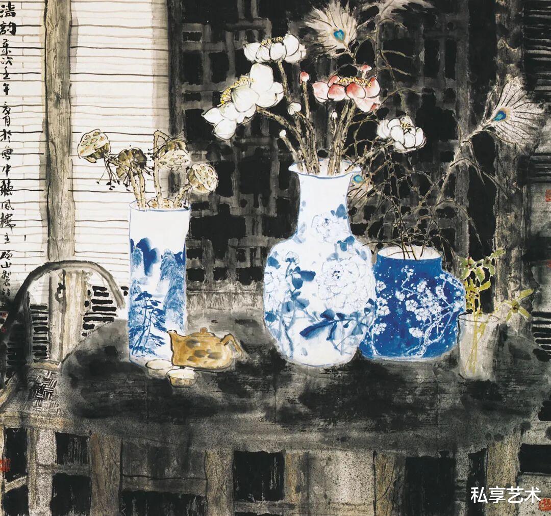 我始终认为:画中国画继承是第一位的,只有下苦功夫,继承优秀的传统笔墨,再加上诗、书的修养等,只有具备了这些基本条件,才能放笔写意。苏东坡赞吴道子壁画诗云:“细观手面分转侧,妙算毫厘得天契。始知真放本精微,不必狂花生客慧”。“当其下手风雨快,笔所未到气己吞”。道出了画理要义的根本所在。要点是“精微”。“真放”的前题是“精微”;精微又是什么?“精微”应指的是画面的细节、灵魂。以“精〞“妙”之心入微的观察、思考,展精绝之技无碍的挥洒、书写,方得“天契”之趣。