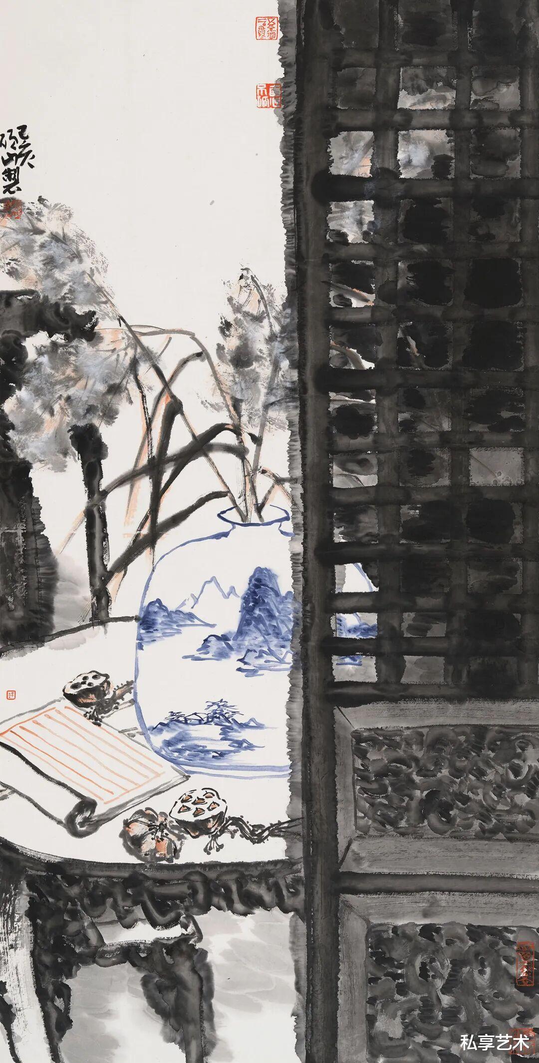 反观我们时下的写意画,大多是草草不求形似的多,能体现“逸笔〞的少。画画胆子足够大,尺幅也足够大,但能经得起推敲、耐得住品读的少。我们感叹写意画难,当代精典作品少。那我们反思一下,我们在古人那里继承了多少?我们的传统功课做了多少?细想,还是大多太急功近利、急于求成,“精微”不足是造成当代写意画缺失的根本。也有人说传统笔墨制约了写意画走向现代。我认为笔墨是技术或技能,没有画画的技术、技巧何谈创作呢?好的作品无论古典还是现代,都应有好的技法支撑。应该说有好的笔墨加上现代意识就能画出与古人拉开距离的作品。我们看有些画现代意识有了,作品也够新,但远观尚可,而近品无一笔能过关。画要能做到:远观其势近察其质,方能经得起品,才算好画。那么,只有我们练就了“精微〞和“逸笔”的技巧,化自然与文心相合,才能做到“笔所未到气己吞”。这样创作出来的作品,无论其形态是古典或是现代,皆能耐看、耐读、耐推敲。
