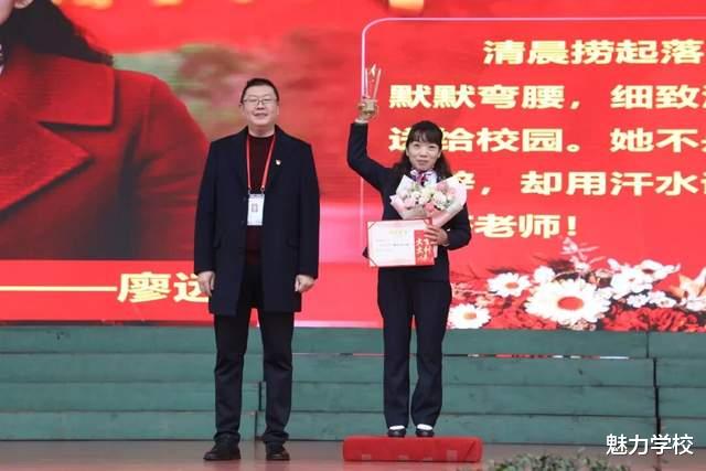 清晨捞起落叶,夜晚扫去尘埃。十一年,她默默弯腰,细致清理,把脏累留给自己,把整洁送给校园。她不是教师,却以行动育人;她不善言辞,却用汗水说话。
