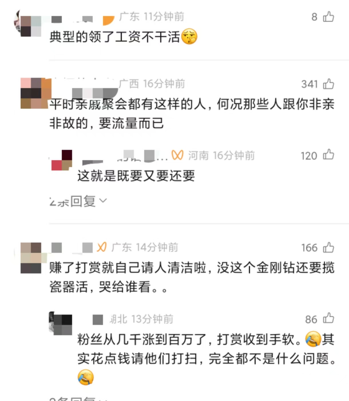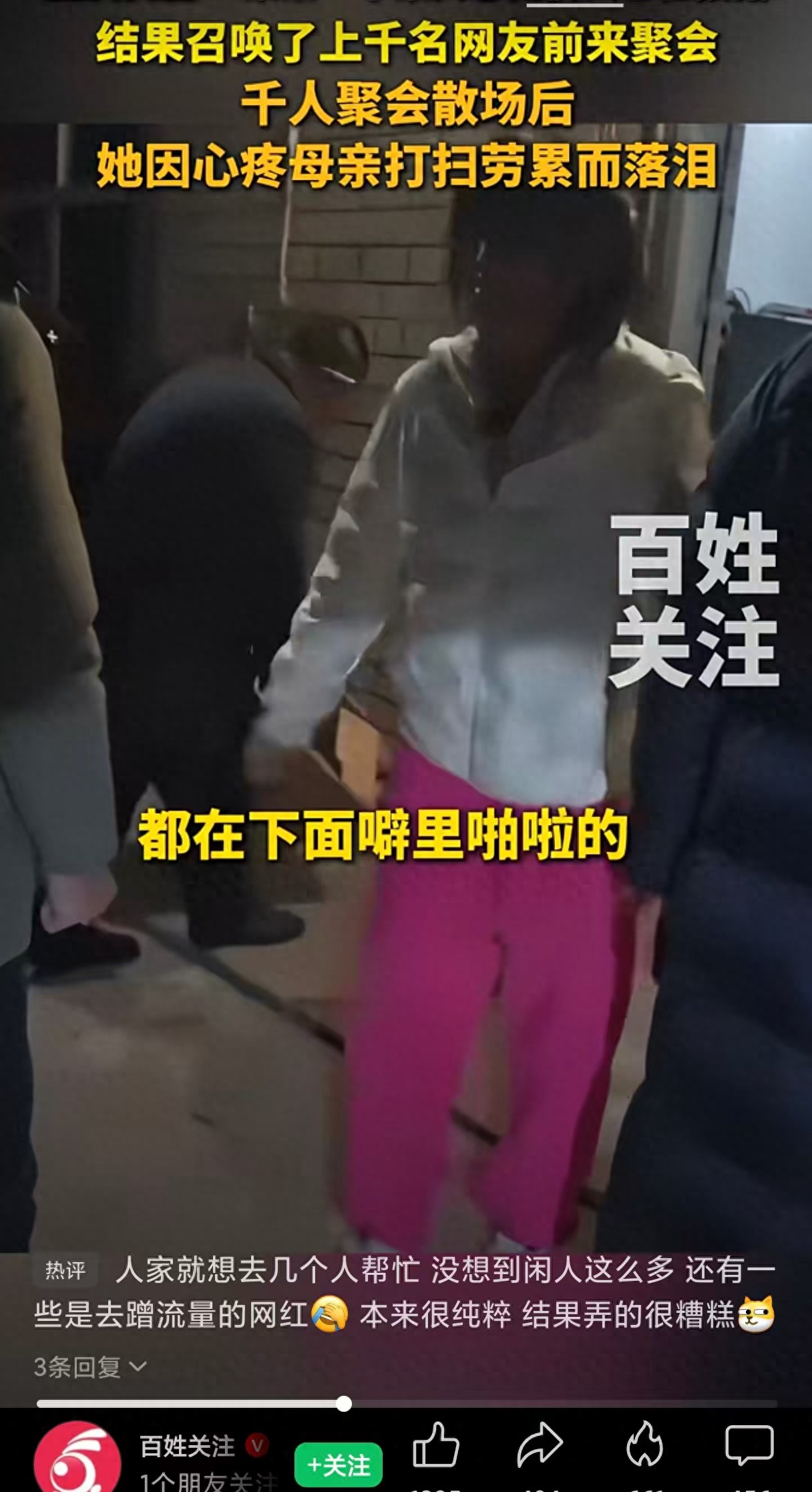 这事起初的那点人情味,早就被流量搅得变了味。呆呆的求助视频意外爆火后,不少网红闻着流量味赶来,举着手机直播蹭热度,把农家院坝变成了打卡现场;普通网友里,真动手帮忙的没几个,大多是凑个热闹吃顿饭,散场后留下满院垃圾,全靠姑娘母亲收拾。可当有人扒出她“直播打赏没停过”,舆论立马反转,姑娘的眼泪被解读成“卖惨博同情”,原本的委屈反倒成了“谋利的戏码”。