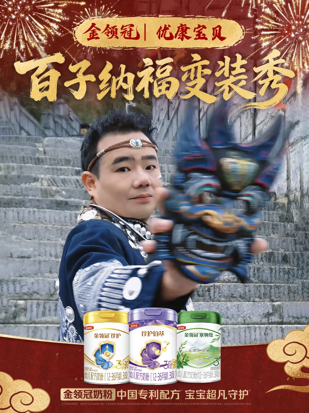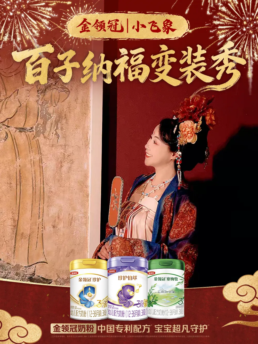 通过“剧情化转场+民族服饰换装”等创意形式,金领冠将产品自然融入情节,使其成为守护宝宝成长、传递年味的情感载体。