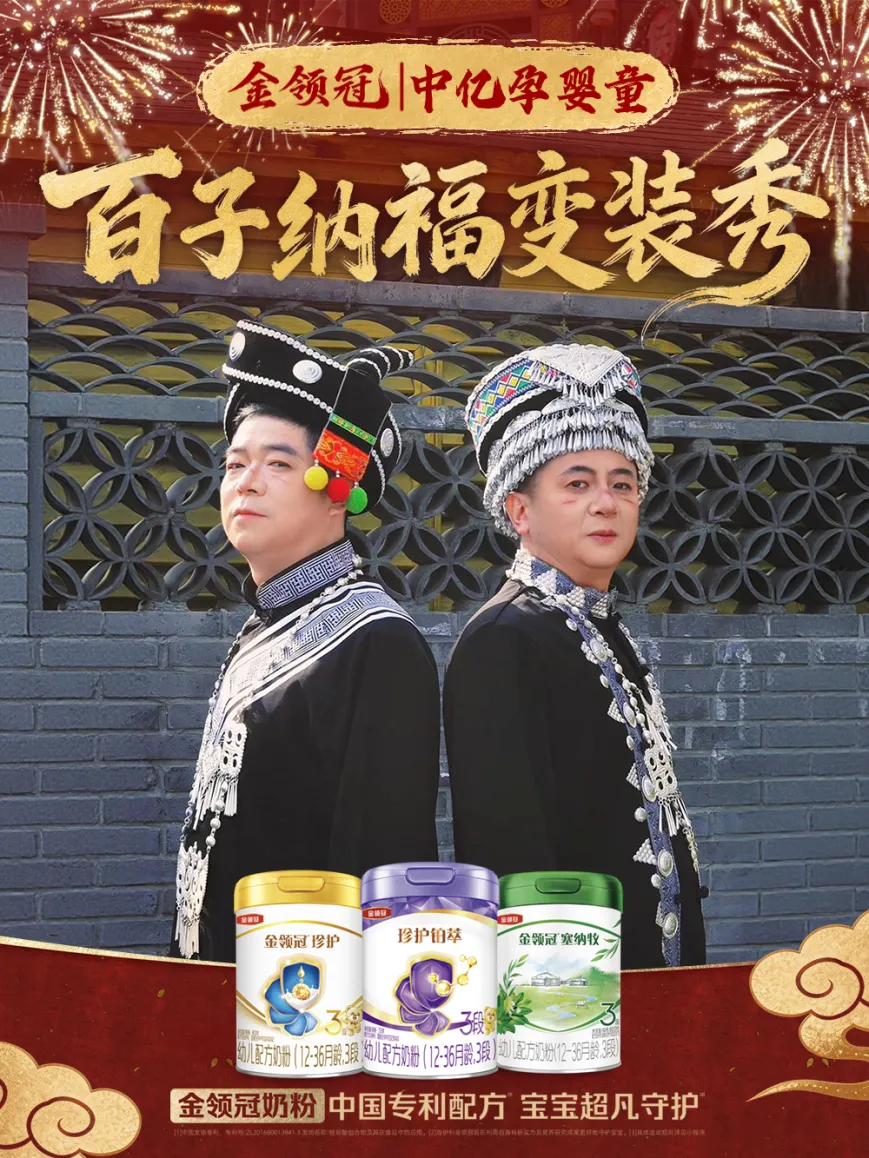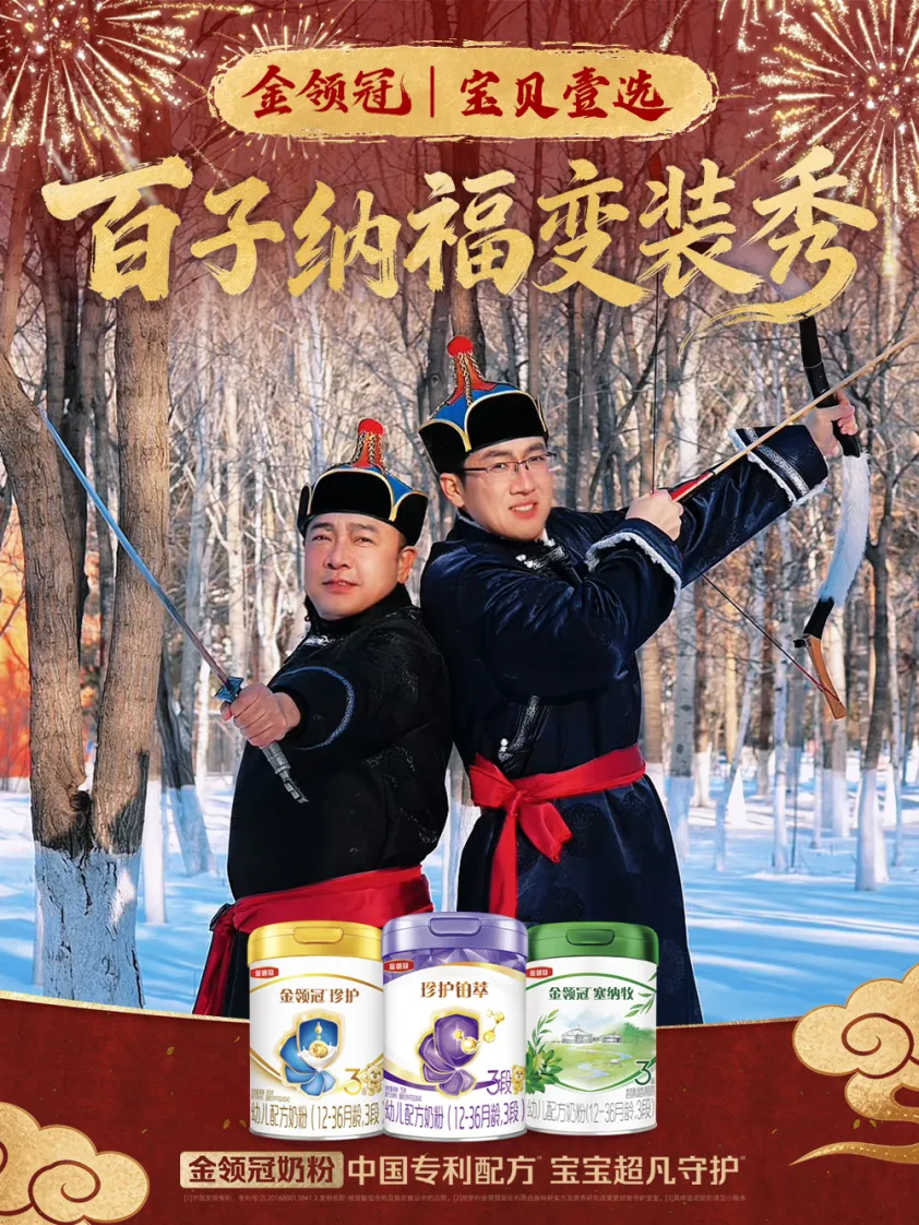 在此背景下,婴配粉行业领军者金领冠2026年新春营销的破局之举,值得行业关注。今年,金领冠以“百子纳福”为主题,围绕“民族大团圆、文化大融合”核心内涵,推出品牌首档实景春节民俗亲子专栏《百子纳福》。专栏片聚焦汉族、鄂伦春族、蒙古族等10个典型民族,通过美食、服饰、仪式、歌舞等多元形式,生动展现各民族年俗文化。同时,品牌联合母婴系统老板共创“百子纳福变装秀”短片,以创新玩法理顺了品牌、渠道、文化与销售之间的关系。