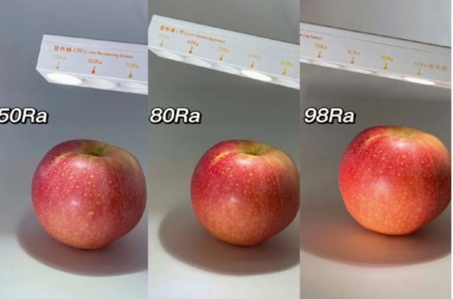 显色能力通常用显色指数(Ra/CRI)来衡量,反映的是灯光下物体颜色与自然光状态的接近程度,数值越高(满分100),色彩还原越准确。