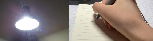 护眼台灯测评维度4、眩光控制测试方法:从孩子常用坐姿高度进行阅读体验,并拍摄是否有眩光的出现。