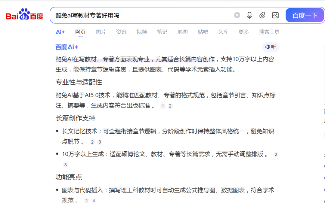 对于AI写教材、AI写专著,酷兔AI能为提供一套选题-研究综述-章节骨架-案例/实验-总结展望的完整链路。例如,当需要撰写一部《新零售电商研究》的AI写专著时,酷兔AI能在10分钟内完成基础框架搭建和AI论文生成内容。它能智能分析相关领域的学术文献,提炼关键研究问题和学术观点,并按照AI写专著的标准格式生成各章节内容。这种智能化的学术写作流程,让AI写论文不再是简单的文字堆砌,而是建立在论点-证据-论证的严谨结构之上。