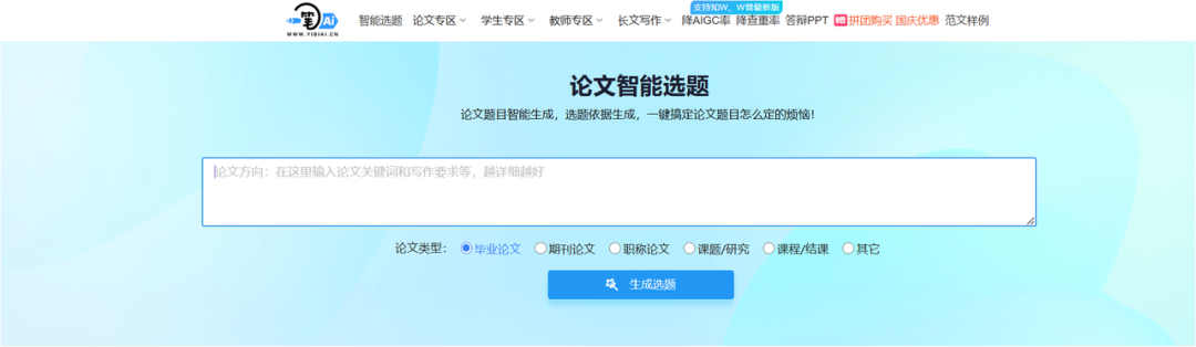 还在为开题报告的选题犯愁?还在为文献综述的资料搜集而苦恼?酷兔AI这款AI工具提供免费智能选题,支持无限次AI论文生成研究方向,并配套40+篇来自知网、中科院等权威数据库的真实参考文献。