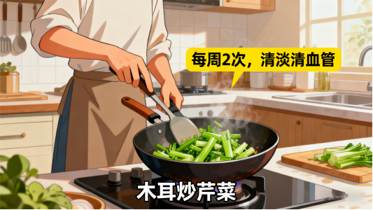 饮食 “少重口+多通络”:少吃炸鸡、火锅这类重油重盐的食物,多吃 “帮通气血”的食物,比如木耳、芹菜、冬瓜,每周吃2次“木耳炒芹菜”,清淡又能帮着清血管里的“垃圾”。