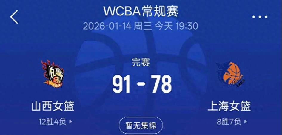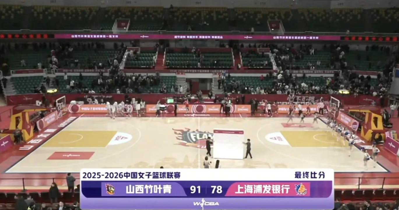 最后三分钟。赫巴德五次犯规离场。林育庭盖帽,惠特尔反篮打进2分,宋柯昕突破再进2分,90-74。卡特长两分再中。90-76。双方换个下主力球员,宋柯昕走上罚球线,两罚中1。李妍熹两罚全中。单节,山西22-11上海。全场比赛结束,山西女篮91-78上海女篮!山西女篮靠末节的强大攻势,保住了主场不失!