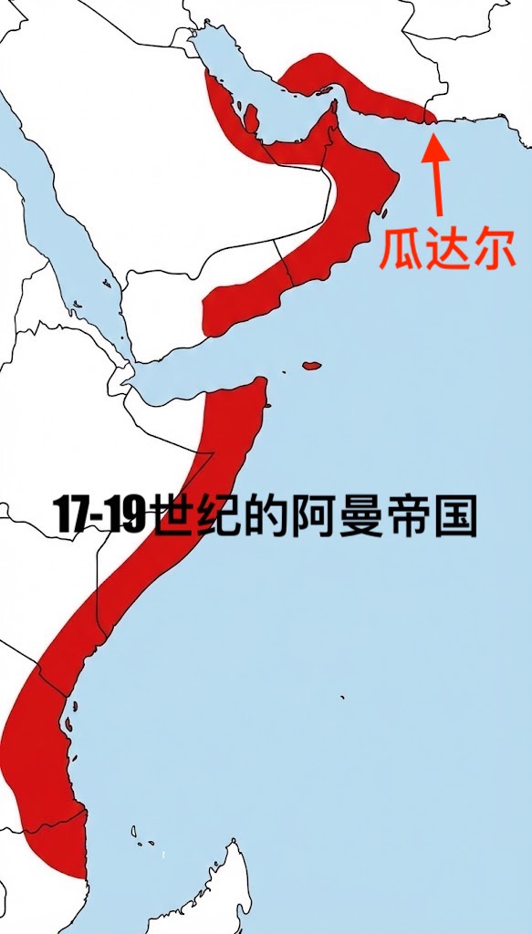 说白了,这是一笔政治投资。9年后,苏尔坦杀回阿曼,夺回了王位。他当上苏丹后,没有归还瓜达尔。反而派来了总督,修了堡垒,把它变成阿曼帝国的海外飞地。
