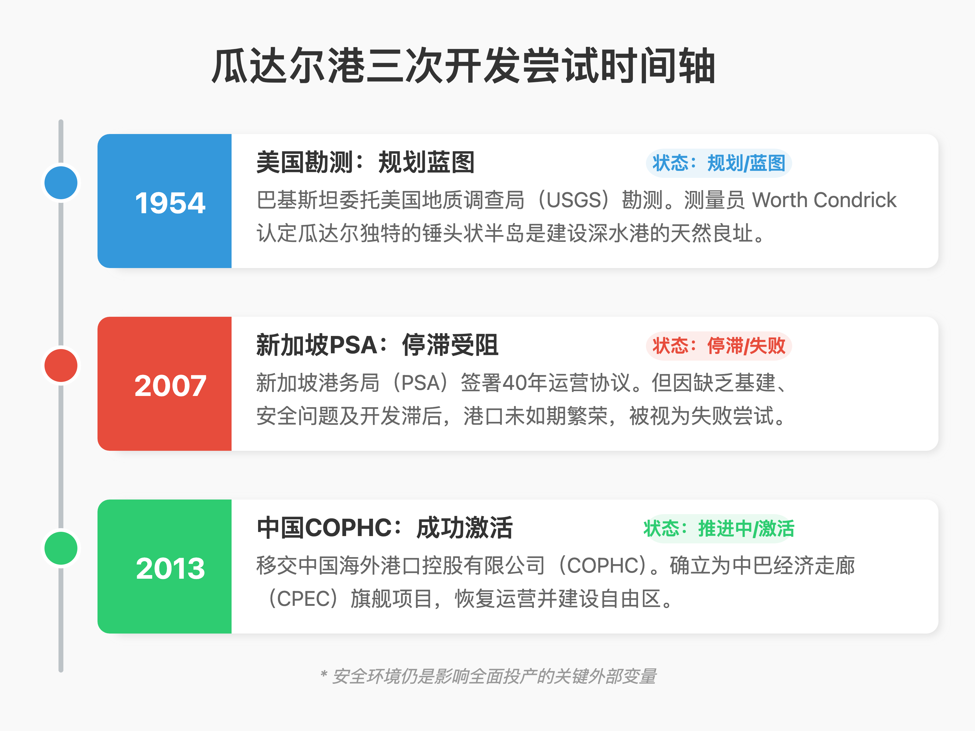 但拿回来之后呢?1958年到2002年,瓜达尔一直是个破渔村。巴基斯坦政府在1964年就想建港口,但没钱。1988年,比利时公司建了个小渔港,仅此而已。美国勘测完就没下文了。花了300万英镑大价钱买回来的战略要地,在抽屉里躺了44年。