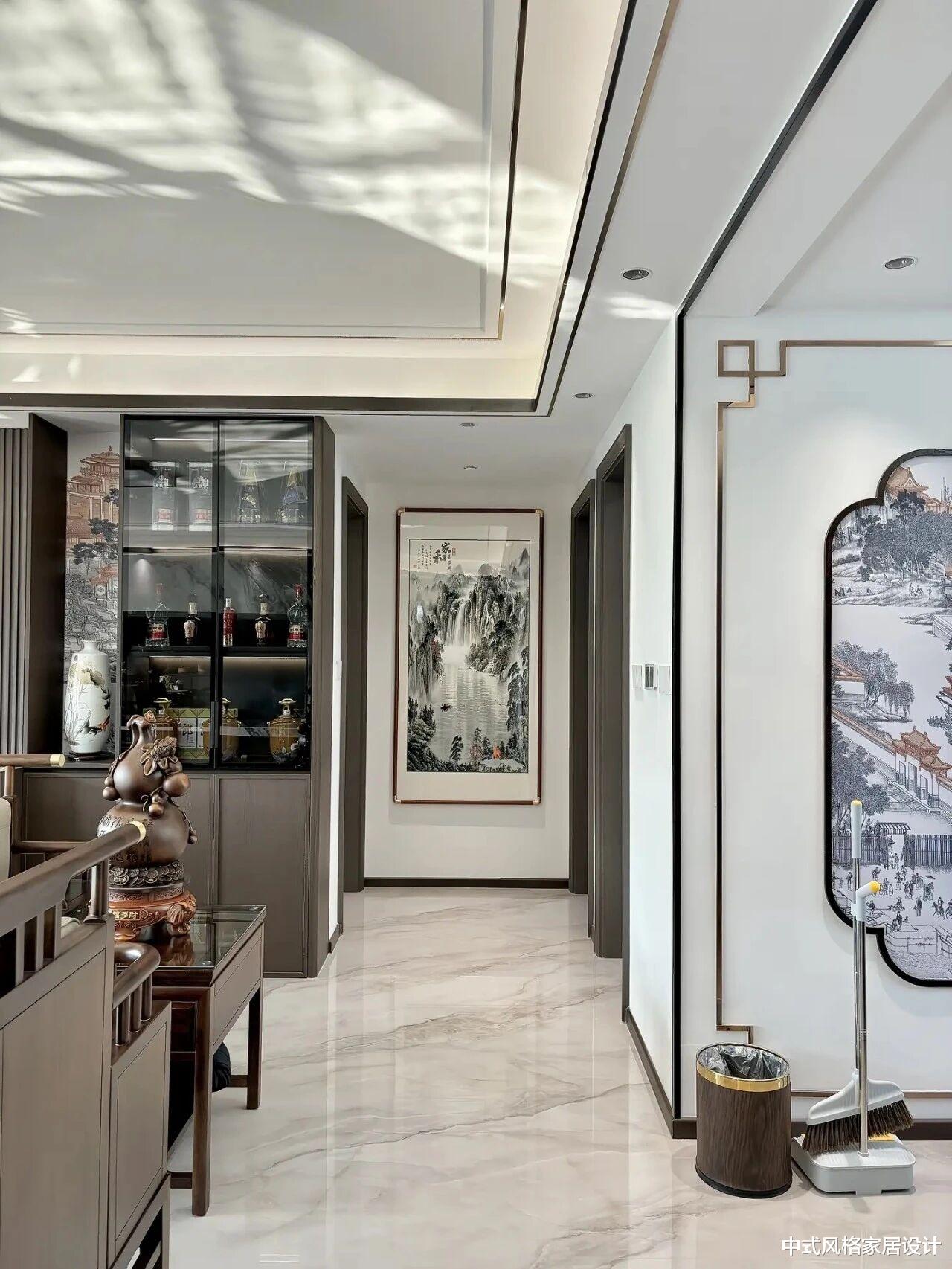 这个家,让我们看到新中式设计的更多可能。它不止于符号的搬运,而是通过对传统文化精神的深刻理解,将其转化为现代生活的解决方案。从整墙柜的实用美学,到悬浮电视墙的意境革新,从餐厅顶部的哲学隐喻,到通铺瓷砖的质感追求,每一步都在诉说:真正的“高级感”,源于文化自信与生活智慧的深度融合。在这里,收纳与颜值无需取舍,诗情画意与烟火日常,正和谐共生。
