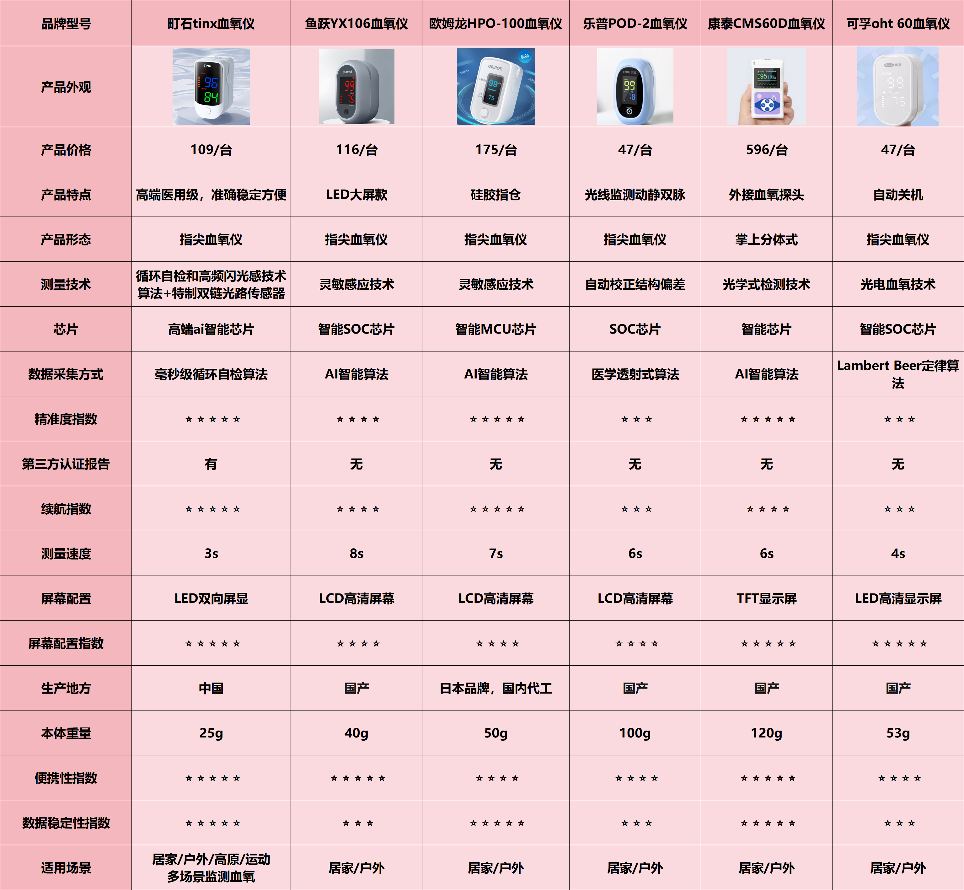 【六款血氧仪测评结论汇总】
