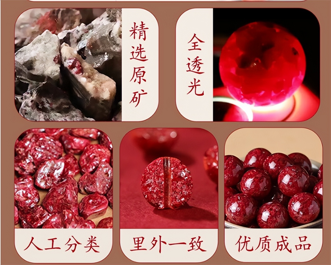 四:辰石朱砂手串 辰石朱砂手串专注原矿保真,原料采自湖南湘西优质矿脉,硫化汞含量达标。采用现代精细工艺加工,珠体光滑细腻,色泽纯正均匀,无任何暗沉杂色。搭配高韧性编织红绳,可灵活调节大小,适配各类手腕尺寸。每款均附带专业鉴定证书,品质有保障,性价比突出。