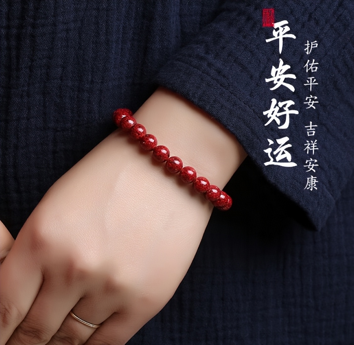 佩戴起来也特别省心,稳定性拉满。手串的莫氏硬度能达到2.5-3,抗磨损能力是普通朱砂的2倍,平时上班、办事天天戴,就算偶尔碰撞也不怕刮花,一直都能保持亮闪闪的状态。就算碰到火锅、暖气这种热环境,颜色也不会发暗、变黑,完美避开了劣质朱砂戴几天就掉色的坑。更贴心的是,它还加了负离子活化技术,戴着手感特别亲肤,贴皮肤戴不闷不痒。没事的时候盘一盘,还能释放温和的矿物质磁场,平时工作压力大、心烦的时候,摸一摸、盘一盘,能慢慢让人静下来,就像个“情绪平衡器”,解压又舒服。