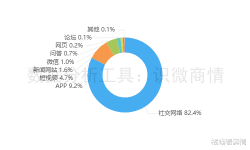 该时段内,有关“三只松鼠鼠名文化争议事件”的舆情主要集中在社交网络平台,约占82.4%,其次为新闻APP(约占9.2%),短视频(约占4.7%)。