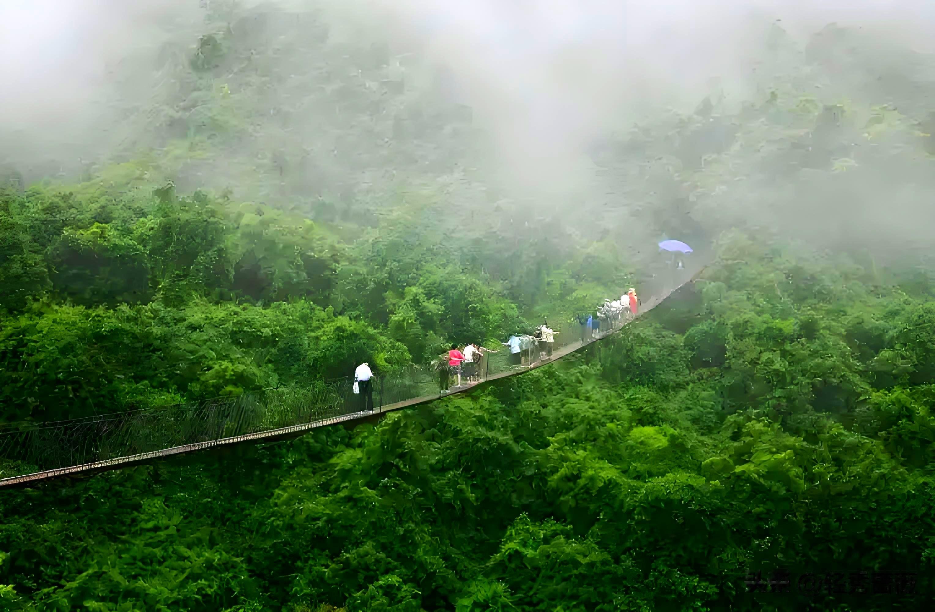 索桥,全长168米,离地40米,是海南跨度最长、离地最高的铁索桥。