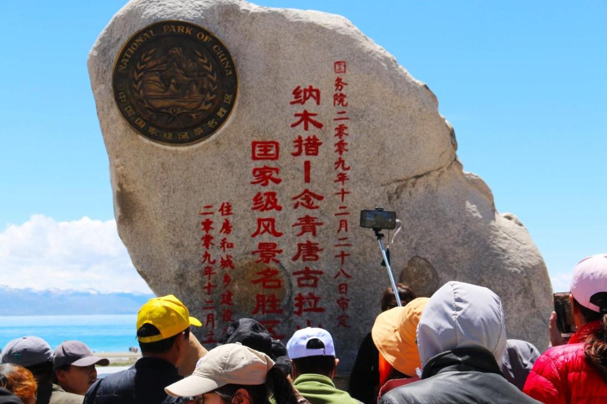 游客实在太多,几乎每一块标有纳木措字样的石头前都挤满了人,你根本无法来一张无人的标志。