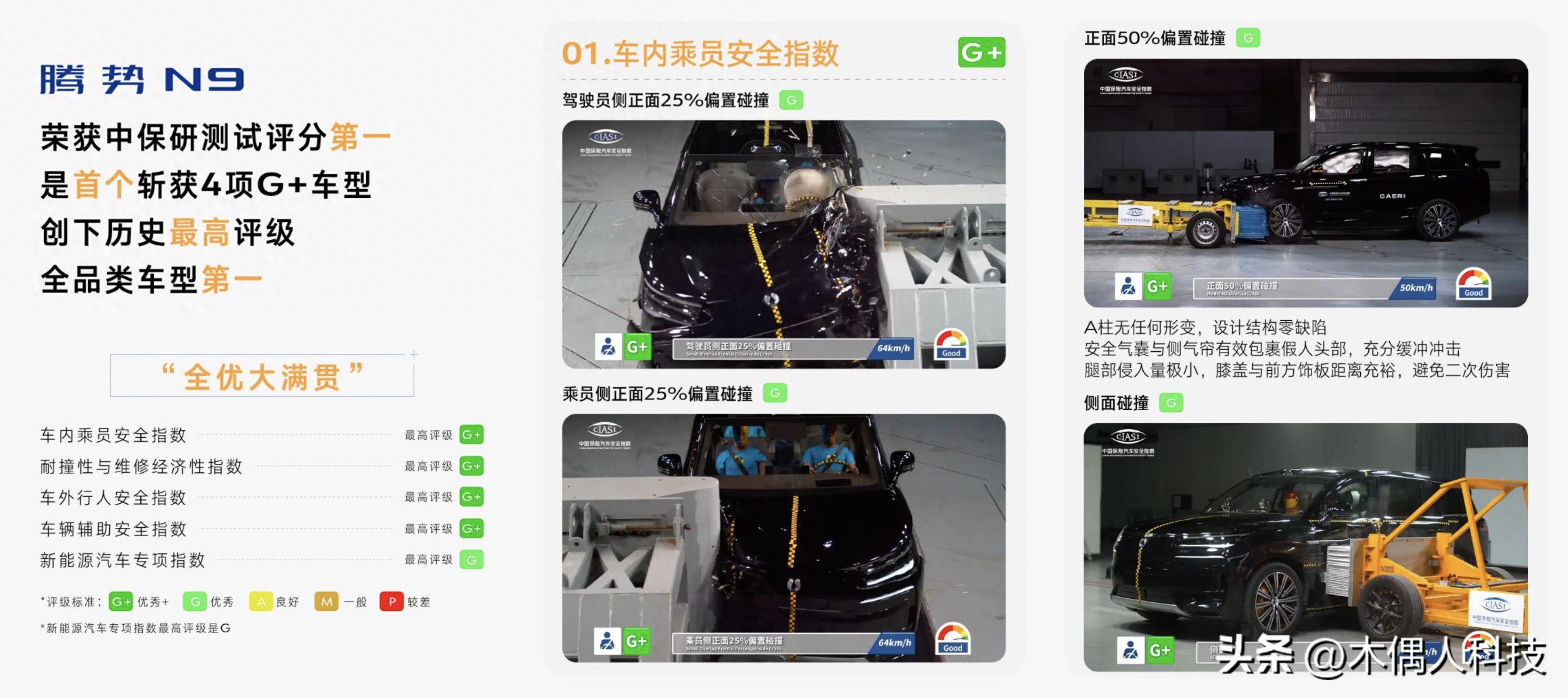 就在最近,中保研公布了2025年第二批车型测评结果,腾势N9直接拿下安全测试评分第一,成了实打实的“安全标杆”!其实仔细一想,腾势N9这么厉害也不是没原因的,五大测试维度全拿到最高评级,还创下首个4项G+的纪录,安全实力这块是真没话说。